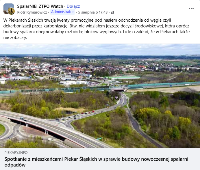 "KW Piekarach Śląskich trwają iwenty promocyjne pod hasłem odchodzenia od węgla czyli dekarbonizacji przez karbonizację. Btw. nie widziałem jeszcze decyzji środowiskowej, która oprócz budowy spalarni obejmowałaby rozbiórkę bloków węglowych. I idę o zakład, że w Piekarach także nie zobaczę."