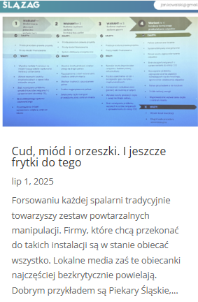 "Forsowaniu każdej spalarni tradycyjnie towarzyszy zestaw powtarzalnych manipulacji. Firmy, które chcą przekonać do takich instalacji są w stanie obiecać wszystko. Lokalne media zaś te obiecanki najczęściej bezkrytycznie powielają. Dobrym przykładem są Piekary Śląskie, gdzie lokalny MPEC rozpoczął propagandę na rzecz rezygnacji z tamtejszej elektrociepłowni na rzecz spalarni odpadów. Zamiast 16.700 ton węgla ma być tam spalane 100.000 ton odpadów (RDF). W materiałach i wypowiedziach MPEC aż roi się od manipulacji i niedomówień. Kilka przykładów poniżej [Czytaj cały artykuł]"